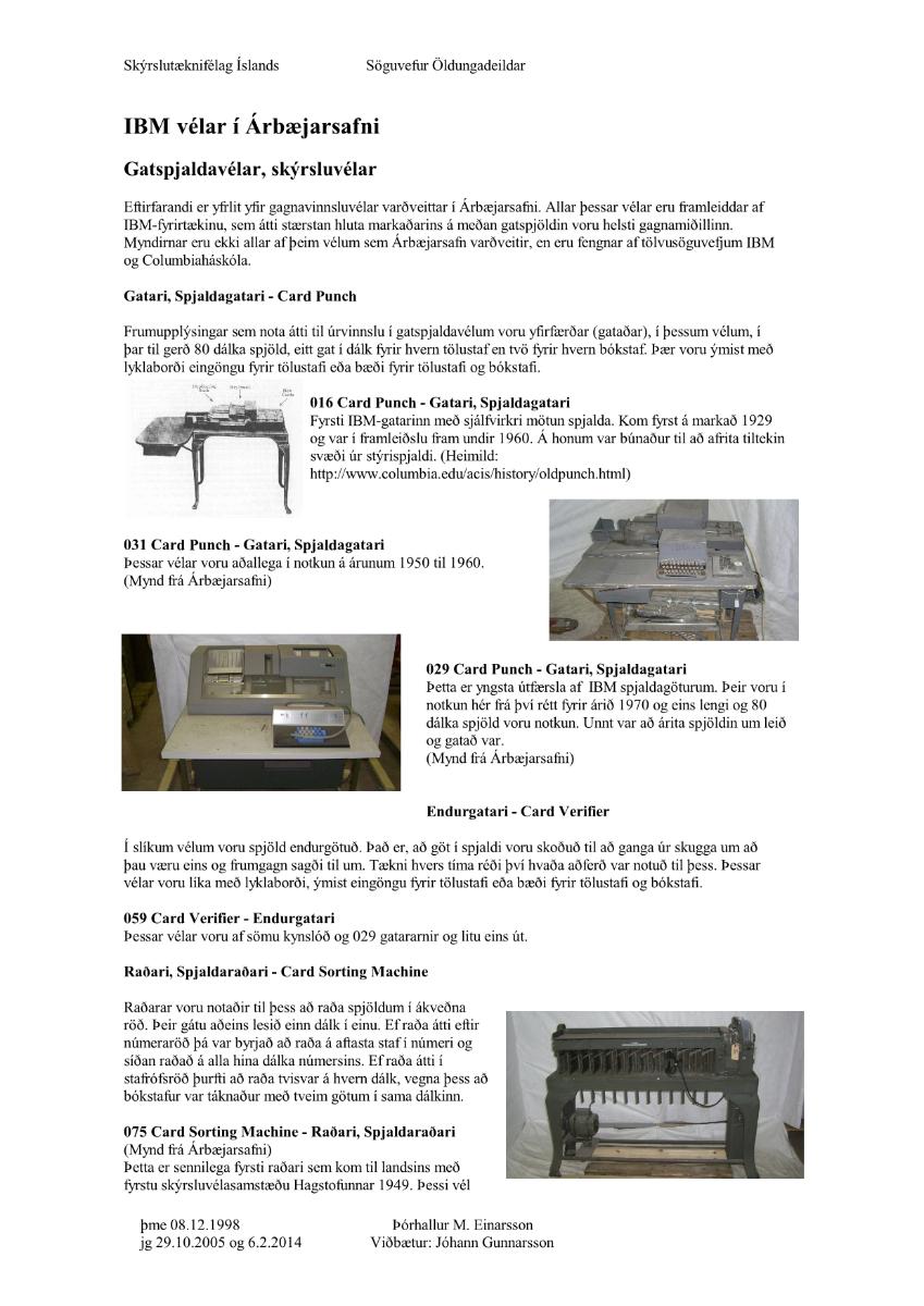IBM 519 summugatari og lesari. "IBM Reproducing punch". Stór og mjög þung vél með ýmsum hólfum og hurðum sem hægt er að opna. Vélin er að mestu dökkgrá á litinn.