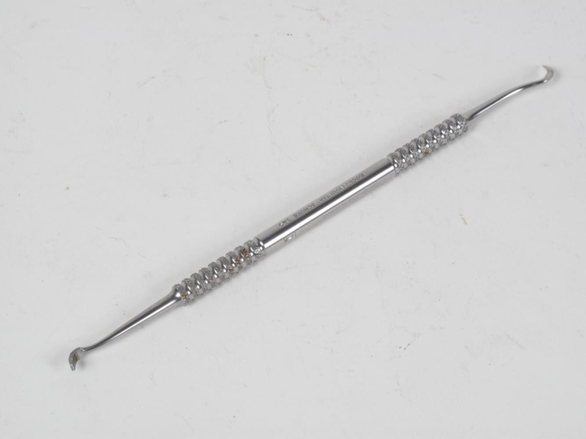 Skafa notuð við tannréttingar. Var til að fjarlægja lím og sement af tönnum.