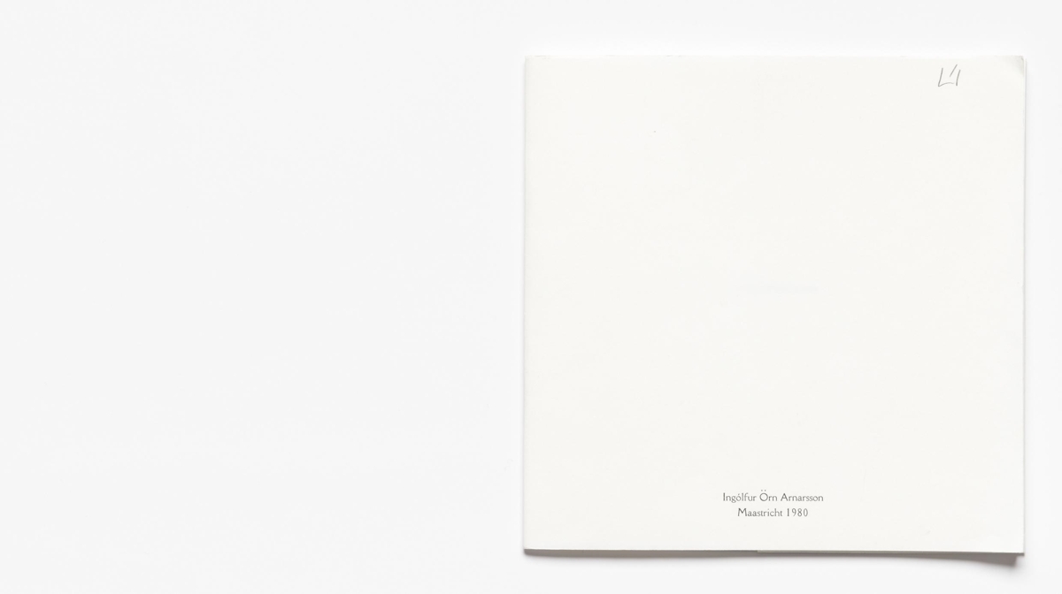 The artist’s book consists of short texts by Ingólfur Arnarsson. The book is 24 unnumbered pages in black print on matte paper. The work is in case binding with a soft cover. The text are printed on one side of each page. The artist’s book was published in 1980 in 100 numbered and signed copies.