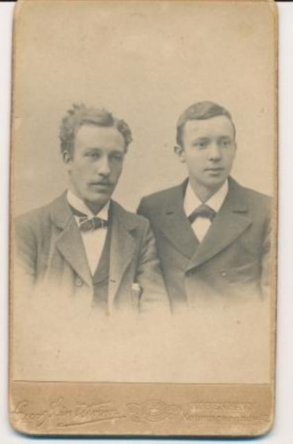 Tveir jakkaklæddir karlmenn. Til vinstri er Sigfús Einarsson tónskáld og til hægri er Sigurður Jónsson. Myndin er tekin í Kaupmannahöfn.