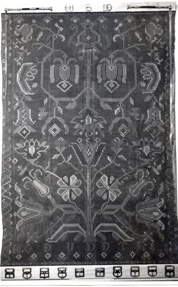 Söðuláklæði 103 x 146 cm. Ofið hefur og átt Halldóra Guðmundsdóttir f. 1860 d. 1924 kona Jörundar Hákonarsonar f. 1852 d. 1922. Þau bjuggu að Birnhöfða Borgarfjarðarsýslu. Áklæðið er glitofið, neðst á standa stafirnir H. GUDMUNDSDOTTIR. 1878.