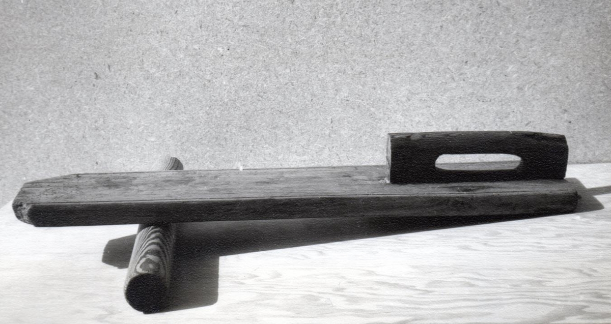 Trafakefli úr Flatey á Breiðafirði. Lengd 63,5, breidd 12 cm, þykkt 2,5 cm. Undirkefli sívalningur lengd 43 cm, breidd 4 cm. Keflið útvegaði mér Birgir Thoroddsen skipstjóri á Lagarfossi, er talið úr eigu Brynjólfs Bogasonar Benedictsen í Flatey.