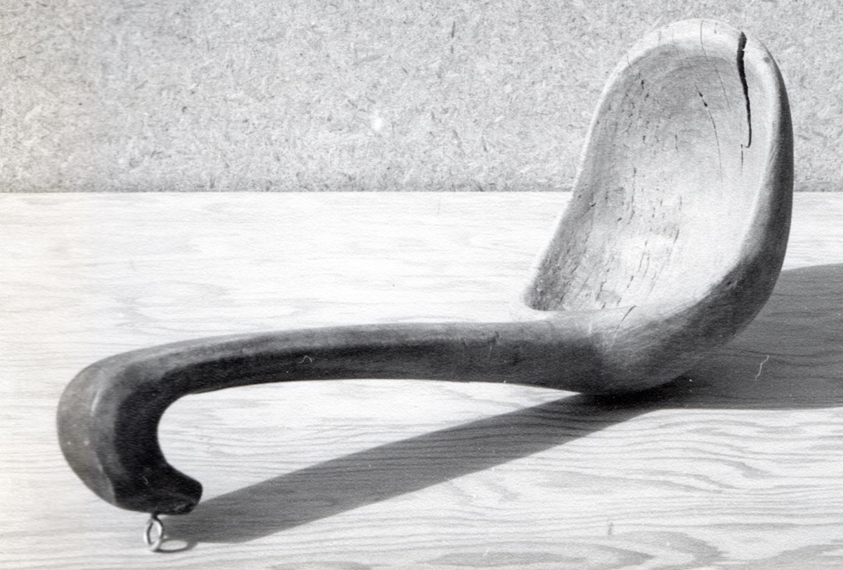 Tréausa úr Flatey. Lengd um 33 cm. Ausuna útvegaði mér Birgir Thoroddsen skipstjóri á Lagarfossi, er hún talin vera úr eigu Brynjólfs Bogasonar Benedictsen í Flatey á Breiðafirði.
