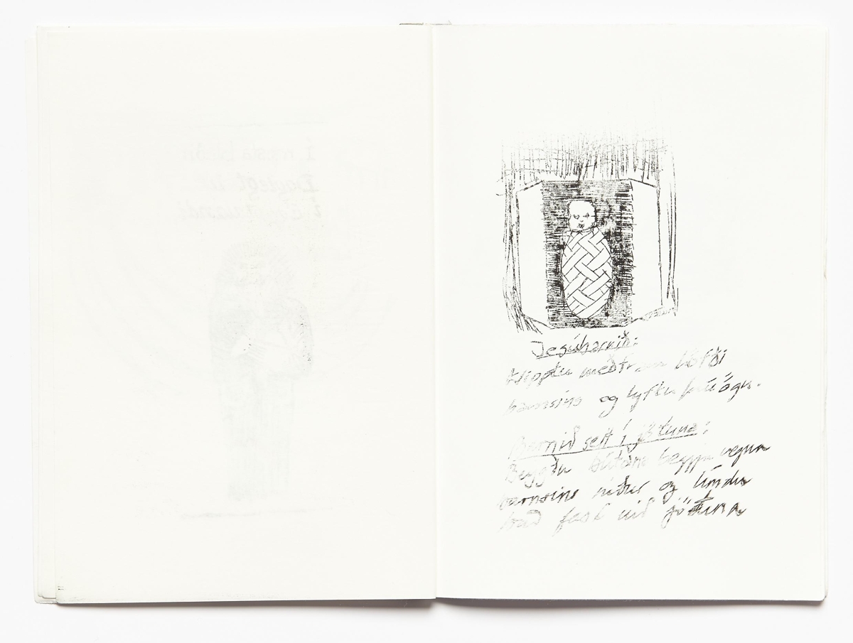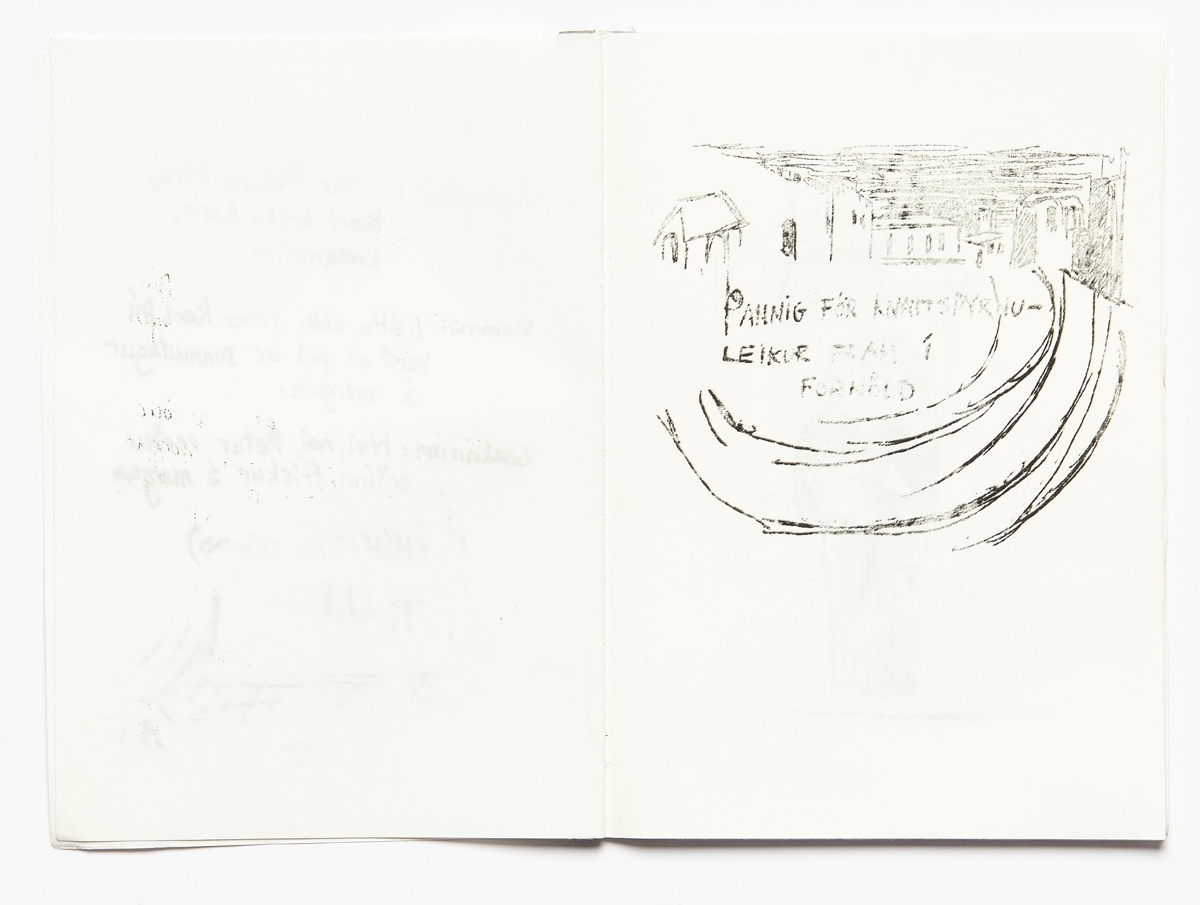 The artist’s book consists of drawings and texts by the artist Þorvaldur Þorsteinsson. The book is 30 unnumbered pages in black print on matte paper. The book is in case binding with a soft cover. The images are printed on every other page. The artist’s book was published by Þorvaldur Þorsteinsson in 1985. The edition is 10 numbered and signed copies.