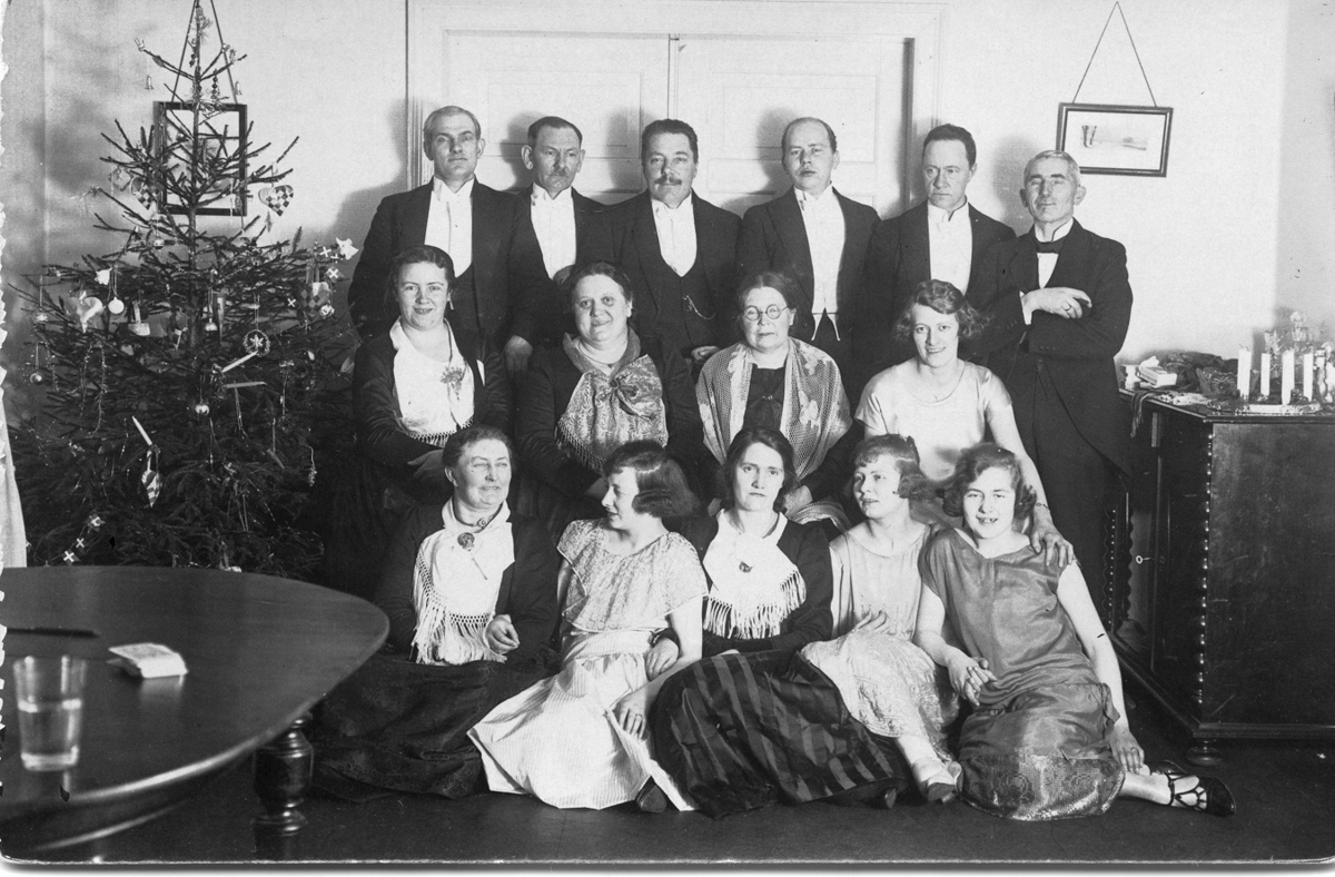 Póstkort. Gestir í jólasamkvæmi hjá Juul apótekara á Ísafirði 1926. Nöfn gesta skráð á bakhlið kortsins. Fylgiskjal RASM_229b.
