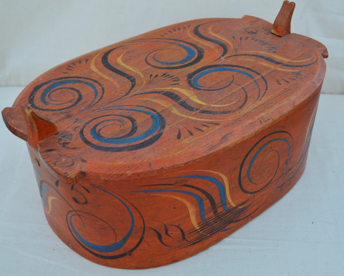 Tína, aðallitur rauður, ýmsir aðrir litir. Lengd 36 cm, 24 cm, hæð 13 cm. Úr búi Halldóru Guðmundsdóttur f. 1860 d. 1924 og Jörundar Hákonarsonar f. 1852 d. 1922 er bjuggu að Birnhöfða Borgarfjarðarsýslu. Gjöf frá dóttur þeirra Sesselju Jörundardóttur, f. 1897, búsett í Reykjavík.