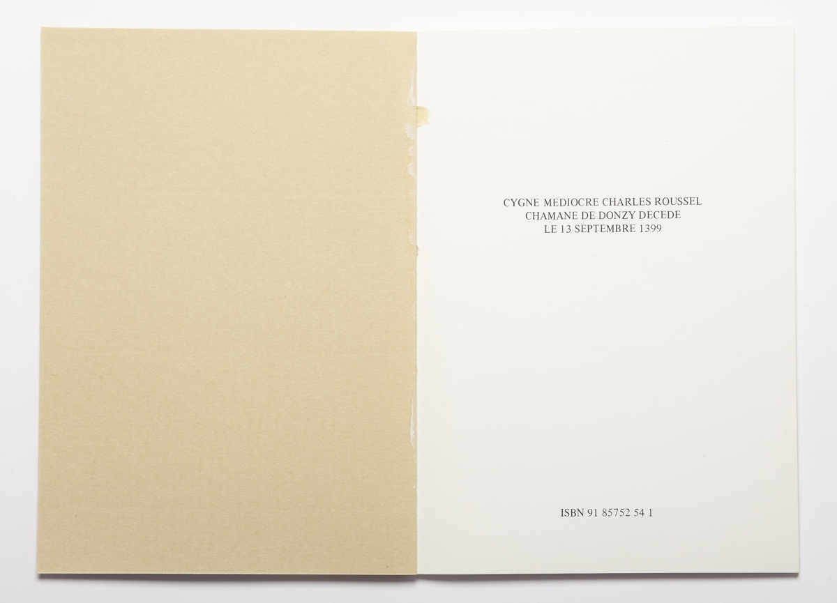 Verkheiti: CYGNE MEDIOCRE CHARLES ROUSSEL. CHAMANE DE DONZY DECEDE. LE 13 SEPTEMBRE 1399