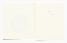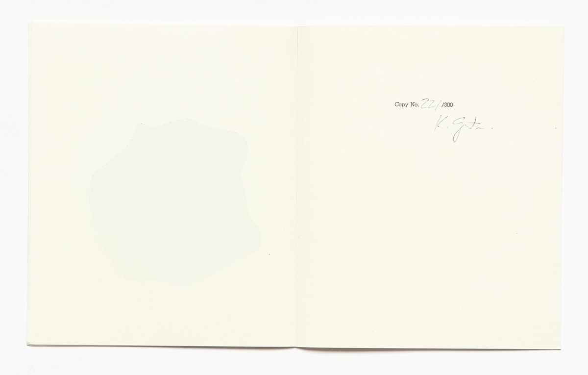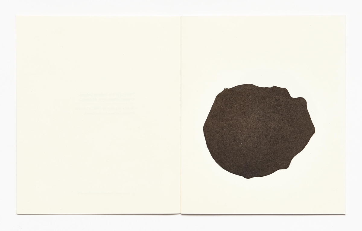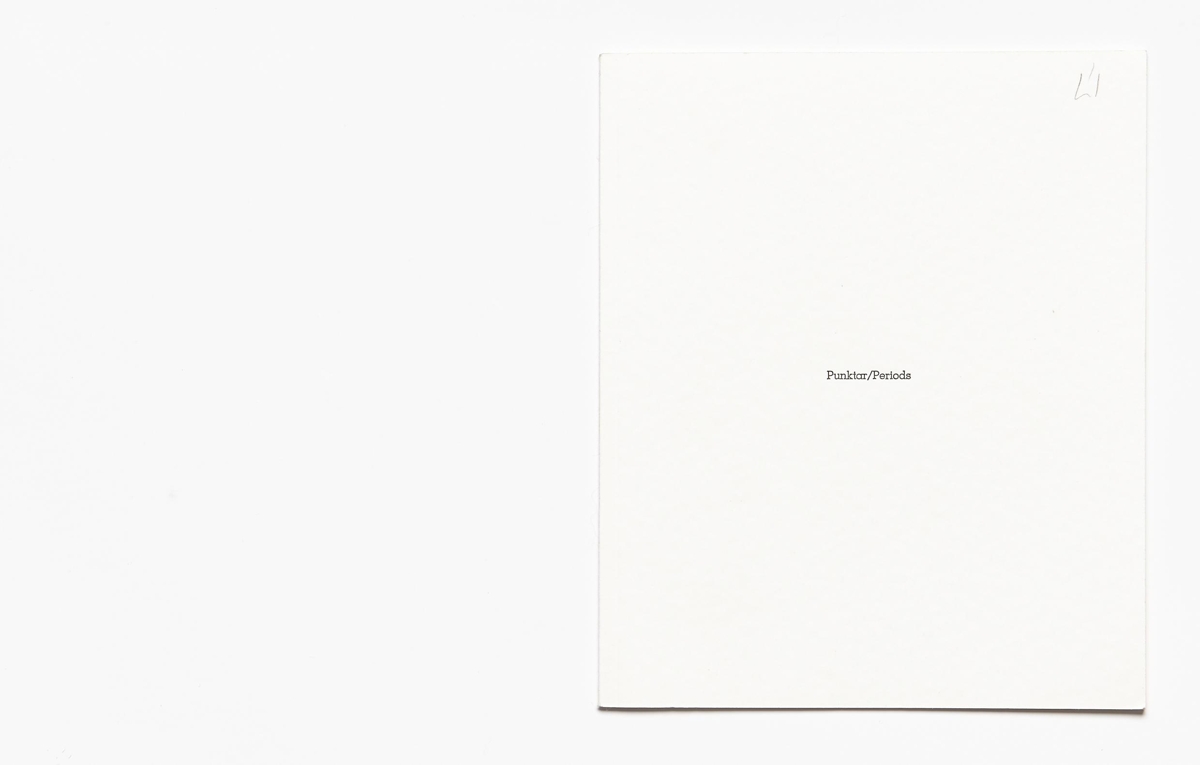 The artist’s book consists of drawings of periods in poems by Halldór Laxness. The book is 5 unnumbered pages in black print on matte paper. The work is case bound in a soft cover. The images are printed on the right-hand pages. The artist’s book was published in 1972 in 300 numbered and signed copies.