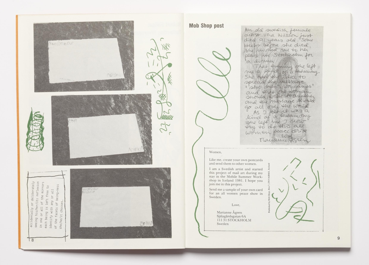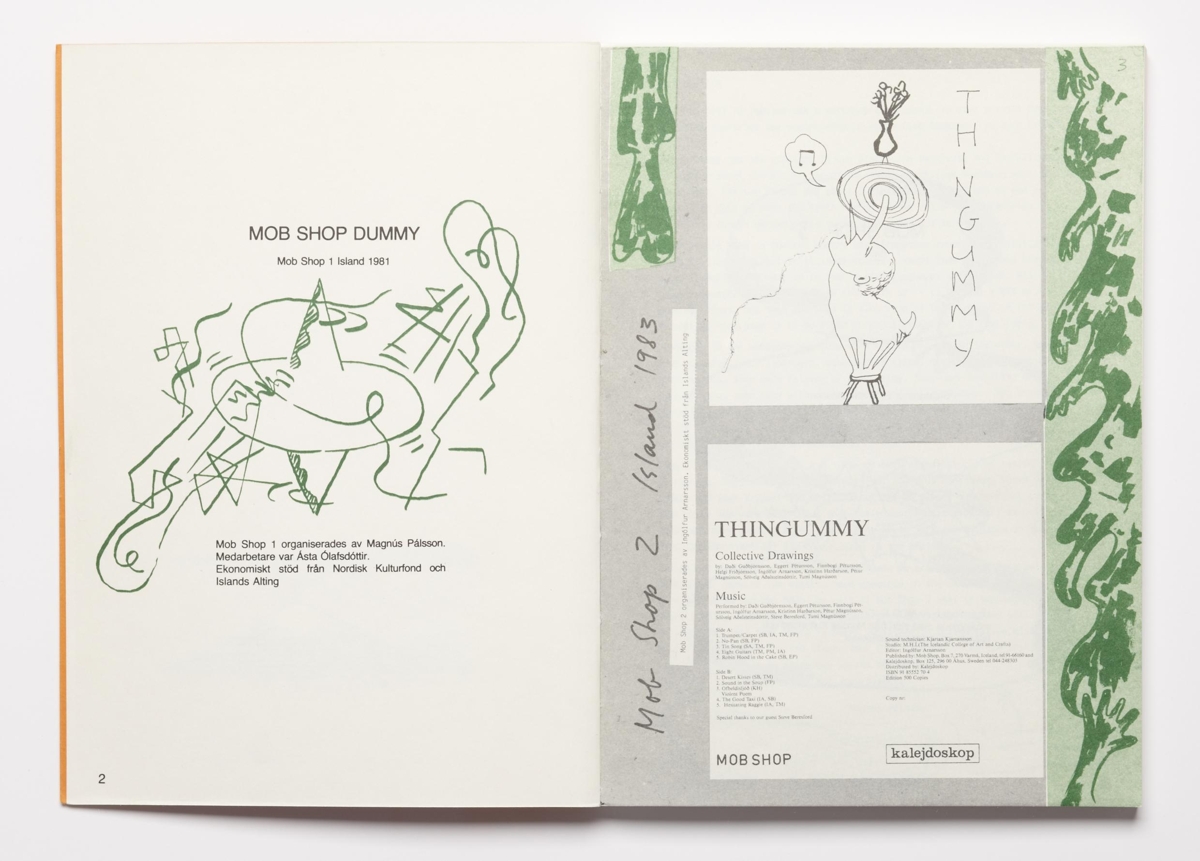 Verkið er 128 blaðsíður, svarthvítt og grænt offsetprent á mattann pappír. Bókin samanstendur af skráningu á verkum og/eða verkum eftir meira en 20 listamenn frá Mob Shop 1, sumarvinnustofa/listasmiðja á Íslandi 1981 þar sem 60 listamenn tóku þátt. Mob shop, stofnað af Magnúsi Pálssyni, var röð alþjóðlegra sumarvinnustofa/listasmiðja þar sem listamenn frá ólíkum löndum unnu saman. Bókin samanstendur af texta; vélritaður og handskrifaður og myndum; teikningar, ljósmyndir, vídeóstillur, collage sem og skýringarmyndum (diagram) og nótum eftir hluta þáttakenda. Uppsetning og ritstjórn bókarinnar unnu Magnús Pálsson og Ingólfur Arnarsson. Teikningar í grænu á blaðsíðum og spjöldum bókarinnar eftir Steingrím Eyfjörð. Handlitaðar teikningar með trélitum, á fyrstu og öftustu síðu eftir Guðrúnu Hrönn Ragnarsdóttir. Texti á ensku, frönsku og öllum fjórum Norðurlandamálum. Límbundin með mjúkum spjöldum. Mob Shop 3 var í formi bókarinnar sjálfrar. Upplag óþekkt.