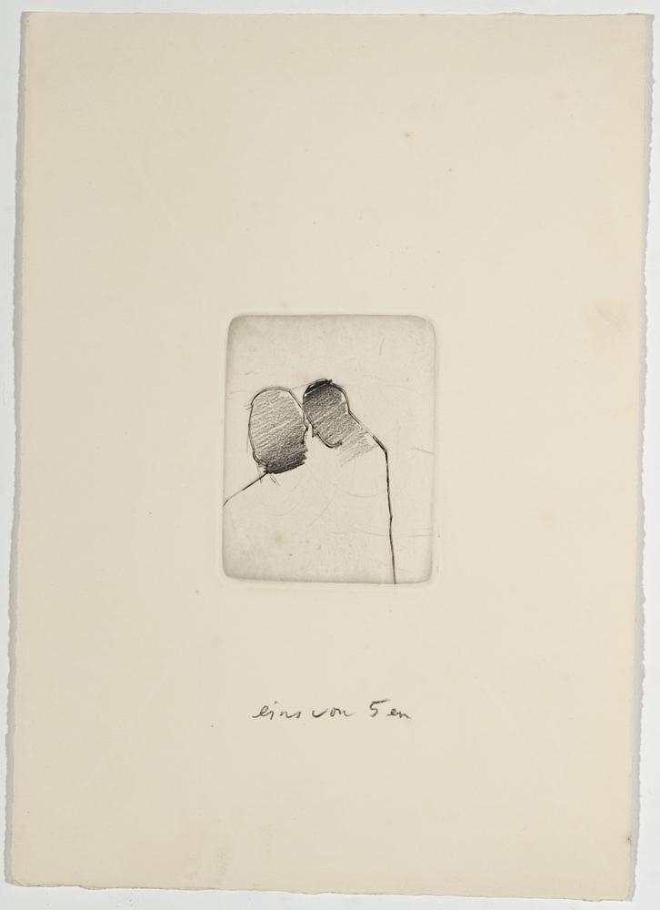 Útlínur tveggja manna, renna saman: krotað yfir andlit mannanna.