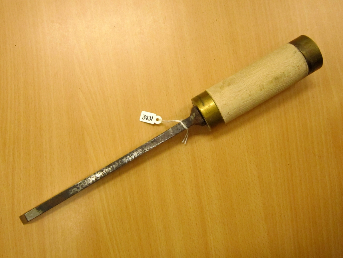 „Leppholl“, trésmíðaverkfæri,notað fram til þess tíma að hulsuborar komu. Lengd 31 cm, gert úr stáli, tré og kopar.