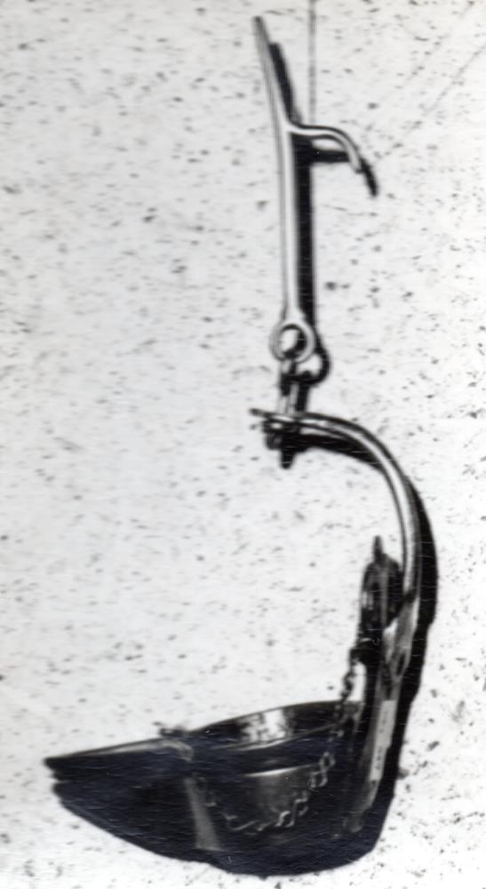 Lýsislampi úr kopar. Efri og neðri skál, keðja og stétt. Hæð lampans er nú 12 cm, en hefur verið nokkuð hærri áður, hefur brotnað en er spengdur saman, haldið sem ber efri skálina er úr járni. Lampann gaf mér Pálmar Ísólfsson, en hann hafði fengið hann á Norðurlandi.
