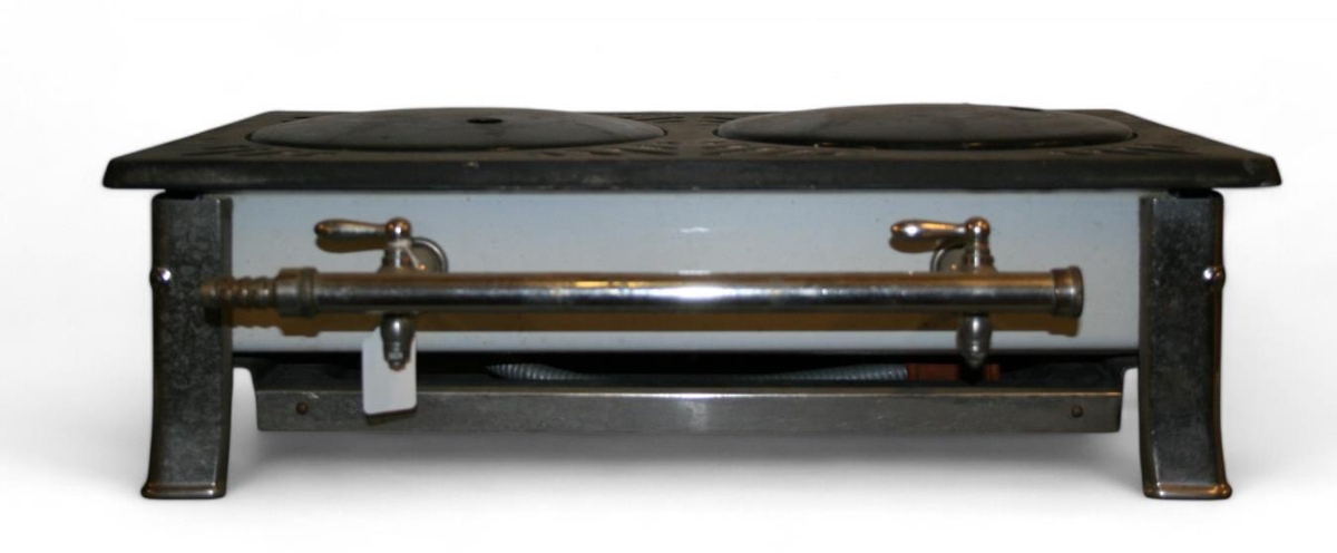 Eldavél. Gaseldunarhella, tvær gaseldunarhellur á borði.Lok yfir báðum.Áletrun: Original Senking.