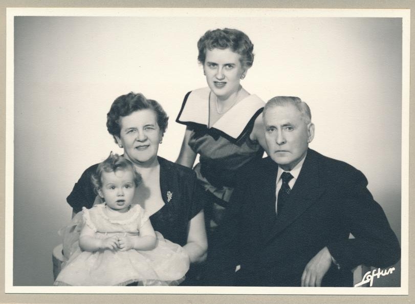 Anna Guðrún þorkelsdóttir situr með dóttur dóttur sína Önnu Elínu Steele, Teitur Kristján Þórðarson og dóttir þeirra Elín Teitsdóttir fyrir miðju.
