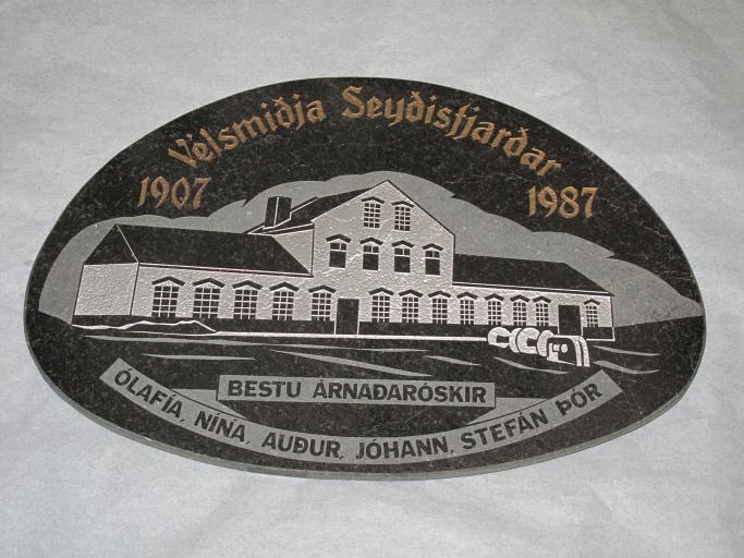 Minningarplatti til að fagna 80 ára afmæli Vélsmiðju Seyðisfjarðar (upphaflega Vjelasmiðja Jóhanns Hanssonar). Plattinn er gjöf frá börnum Stefáns Jóhannssonar framkvæmdastjóra.
