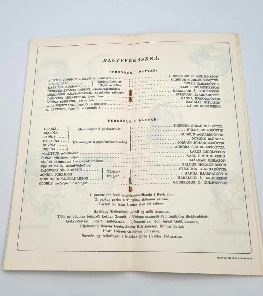 Söngskrá fyrir revíuna "Tunglið Tunglið taktu mig. Alþýðleg tunglspeki í 2 pörtum og 1 partý" eftir Guðmund Sigurðsson og Harald Á. Sigurðsson. Leikstjóri Haraldur Á. Sigurðsson og leikarar fjölmargir.