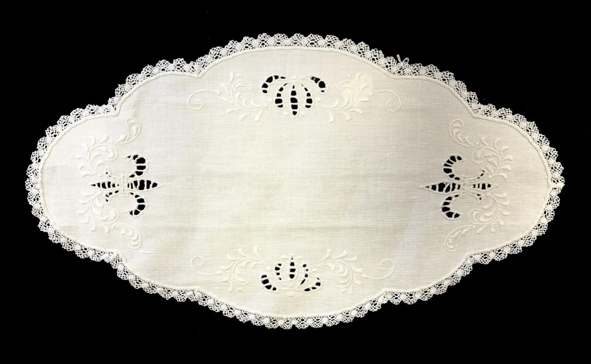 Lítil dúkur, með flatsaum. Faðir Elínar keypti Svalbarð 1939. Þau bjuggu þar til 1963 er þau hjónin fluttu til Akureyrar, Möðruvallarstræti 5, Vanabyggð 6 og síðast Víðilund 24. Elín fór 17 ára á húsmæðraskóla á Blönduósi. Kjartan vann á verksmiðjunni Strítu til sjötugsaldurs.