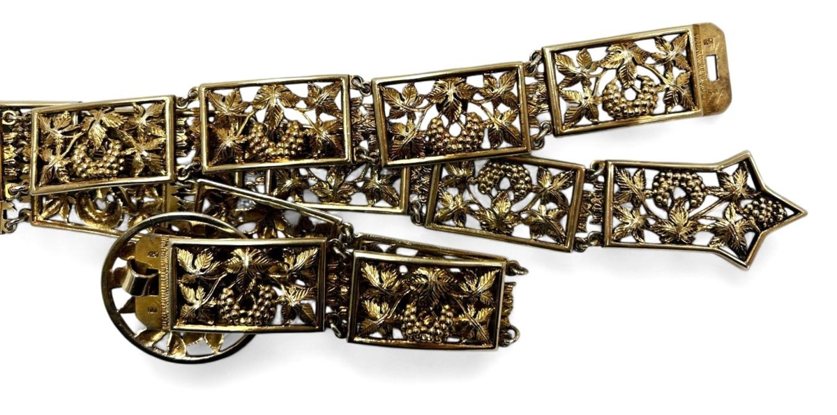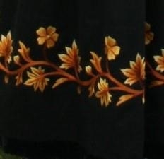 Skautbúningur, samfella úr svörtu klæði, skatteruð í gulum "sjétteringum" eftir teikningu Sigurðar Guðmundssonar. Treyja með baldíringu á flauelskanti. Sprotabelti, gyllt silfur, loftverk. Spöng, faldur og blæja.
