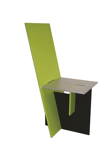 Stóll samsettur úr fjórum krossviðarplötum, málaðar í grænum og svörtum lit. Framleiðandi Källemo, Svíþjóð. 2 eintök í safninu.