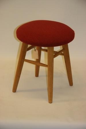 Kollur úr eik, seta klædd með rauðleitu íslensku ullaráklæði.