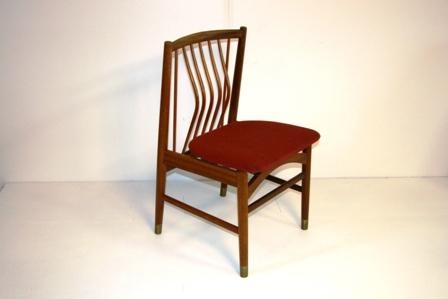 Borðstofustóll hannaður af Sveini Kjarval og smíðaður hjá Nývirki hf, Reykjavík. Stólarnir voru notaðir á Hótel Loftleiðum eftir að fyrsti áfangi hótelsins var tekinn í notkun í kringum 1963-65. Seta stólsins er klædd með rauðu ullaráklæði en í baki eru formbeygðir pilárar, viður er tekk.