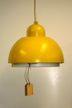 Hangandi lampi, hugsaður yfir matarborð í eldhúsi eða hliðstæð tilfelli. Lampinn er dreginn úr álplötu yfir stálmót.