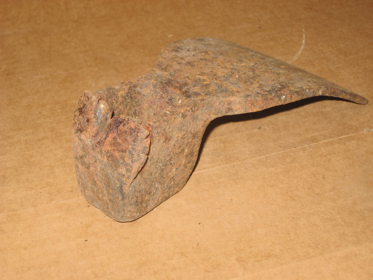 Skaröxi sem er oriðn ryðguð. Þreyta komin í hnakka og málmurinn farin að klofna.