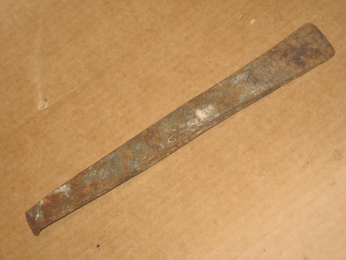 Þjöl sem hefur verið endurnýtt sem meitill. Búið að fletja annan enda í meitiltönn.