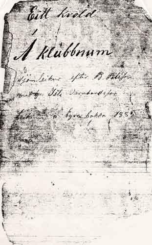 "Þetta er forsíðuhandrit að leikriti Bjarna Pálssonar, Eitt kvöld í Klúbbnum sem leikið var á Stokkseyri áður en Bjarni fórst. Bjarni var frá Syðra-Seli, einn af „Selsbræðrum" og var föðurbóðir Páls Ísólfssonar." Bjarki Sveinbjörnsson, 26. mars 2016. bjarki@musik.is