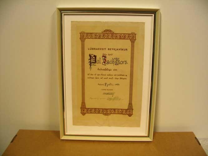 Pál Ísólfsson heiðursfélaga sinn. Reykjavík 7. júlí 1942. Stærð: