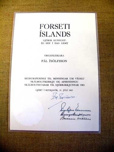 Heiðurspening til minningar um vígslu Skálholtskirkju 21.7.1963
