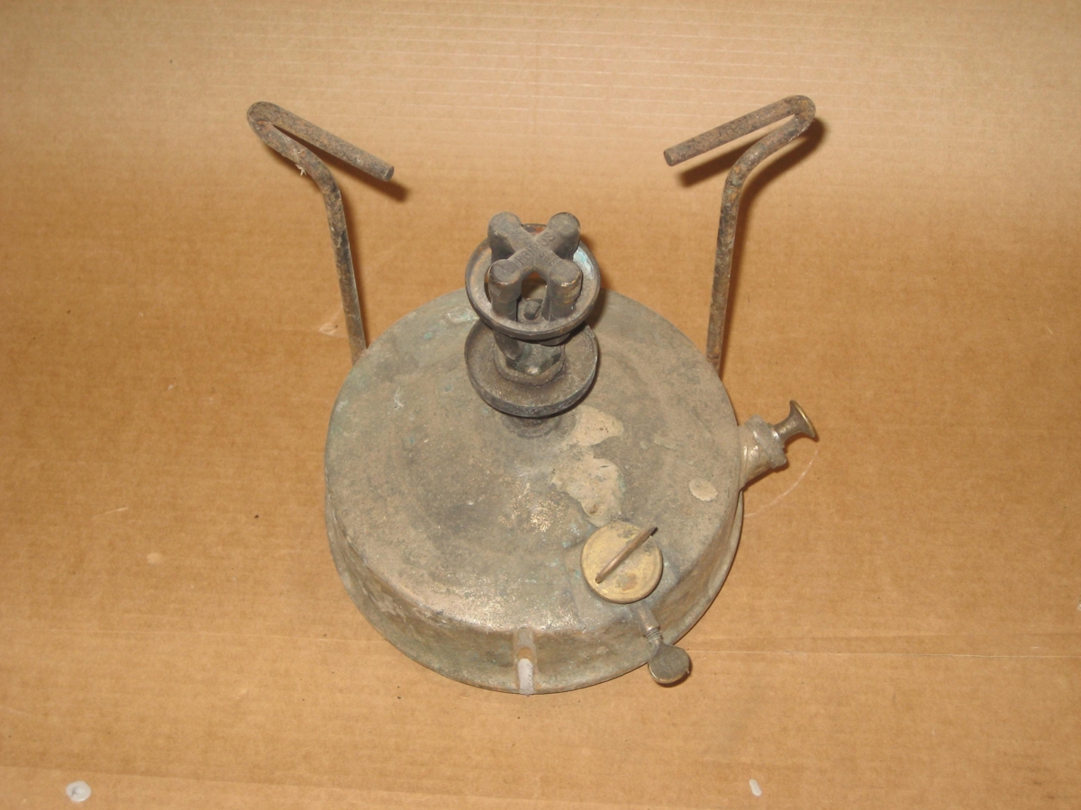 Nikkel húðaður Svea no 5 primus. Sennilega fyrir 1925. Grafið er í tankinn „The king of stoves, Svea no 5 " Og svo setning á arabísku. Fætur hafa verið þrír upphaflega en einn er glataður.