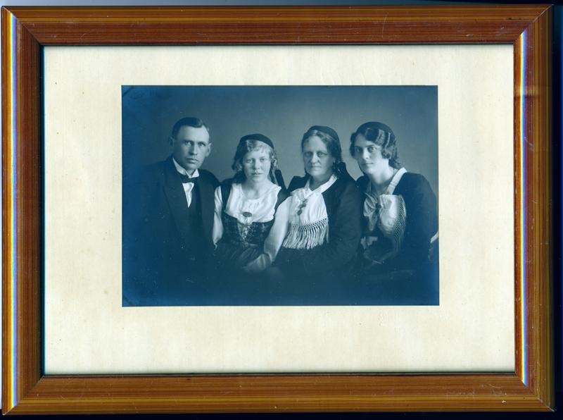Svarthvít mynd af fr.v Magnúsi Oddsyni, Helgu Helgadóttur, Helgu Magnúsdóttur og Jórunni Oddsdóttur.