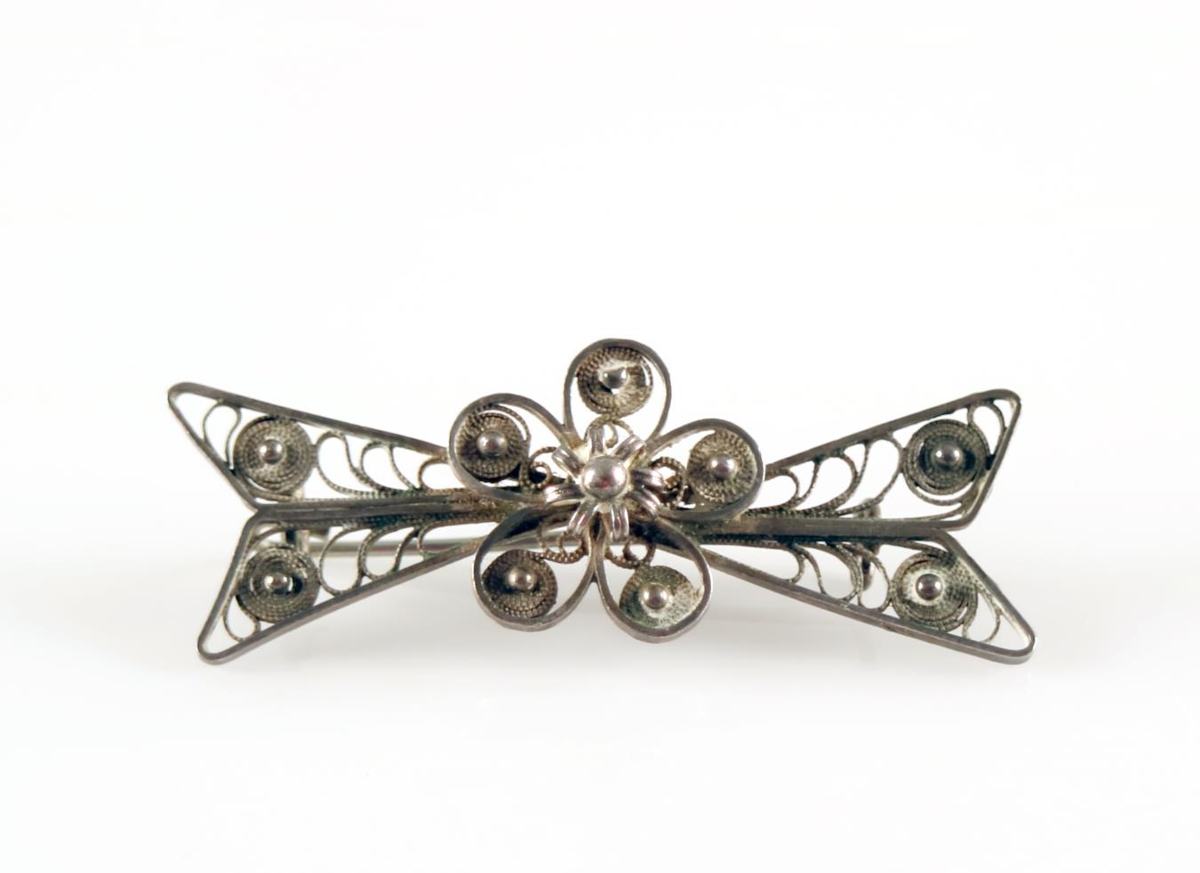 Víravirkisnæla úr silfri. Hún er í líki eins konar slaufu með blómi fyrir miðju. Fyrir miðju blómsins er kornsett rósetta. Nælan er óstimpluð og ekki er vitað hver smíðaði. Ekki er heldur vitað hver átti næluna. Lengd nælunnar er 5,4 cm og mesta breidd 1,9 cm. Nokkuð er fallið á silfrið og á nælunni eru allnokkrar leifar af silfurfægilegi. Annars er hún í góðu ástandi.