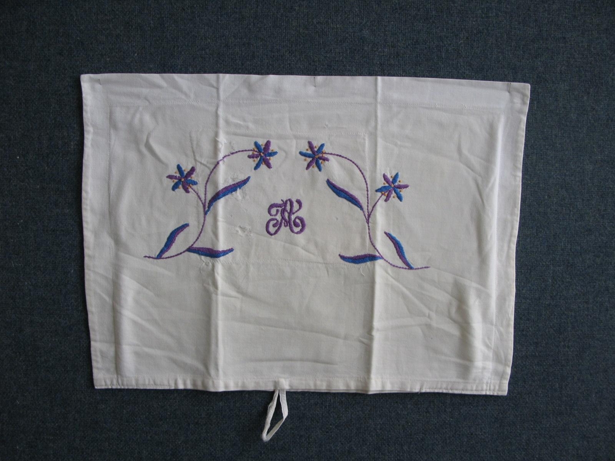 Hvítt koddaver, frekar lítið með útsaumuðum rósum og stöfunum "J.Á". Útsaumurinn er með fjólubláu og dökkbláu bómullargarni. Þetta er mest flatsaumur og kontorstingur. Koddaverið mjög slitið að að framan og momið í nokkur göt. Stafirnir J og Á eiga við systkynin Jón Kristberg og Ástu Aðalheiði. Saumað af Ástu Erlendsdóttur.