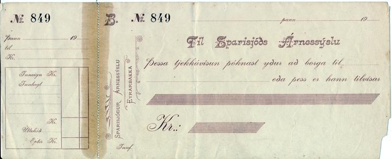 Óútfyllt ávísun til Sparisjóðs Árnessýslu. No 849.