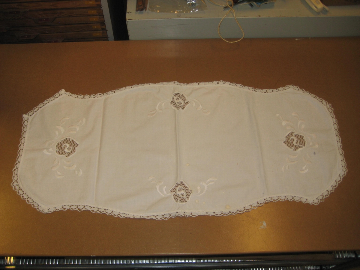 Til baka í leitVeistu meira?Vista í mitt safnPrentaAfrita slóðPanta myndNotkunarskilmálarDúkur, af sófaborðiVarðveitt hjáByggðasafn Árnesinga Hvítur bómullardúkur / Löber. Útsaumaður. Aðrar upplýsingarJóhanna Helgadóttir, Hlutinn gerði Gefandi: Sesselja Ósk GísladóttirEfniLífræn efni, Textíll, Náttúruleg vefjarefni, BómullSafnnúmerSafnnúmer B: 2012-18-1Stærð88 x 40 cm Lengd: 88 Breidd: 40 cmStaðurStaður: Berg, 820-Eyrarbakka, Sveitarfélagið ÁrborgAðfangategundMunirUndirskrárUndirskrá: Almenn munaskráEfnisorð / HeitiEfnisorð: Dúkur, af sófaborði