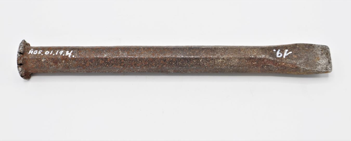 Áttkantaður öxull, sleginn í spíss í annan endan en kjagaður í hinn eftir hamarshögg.