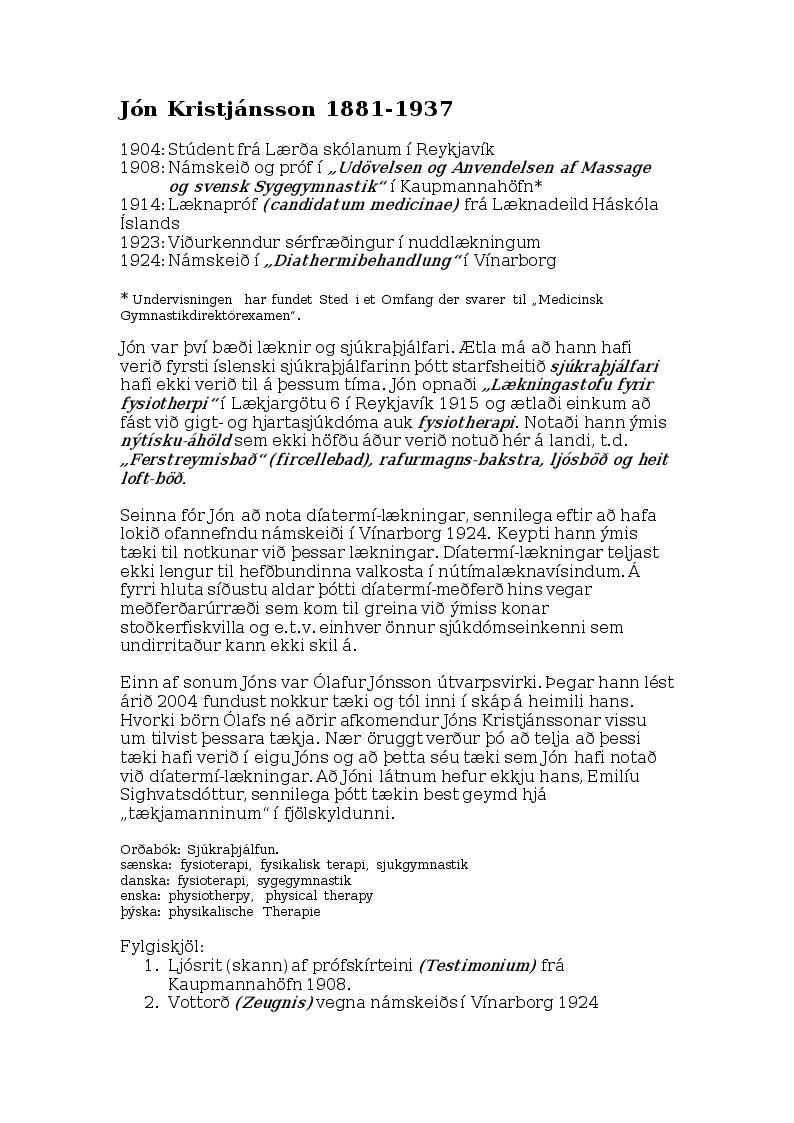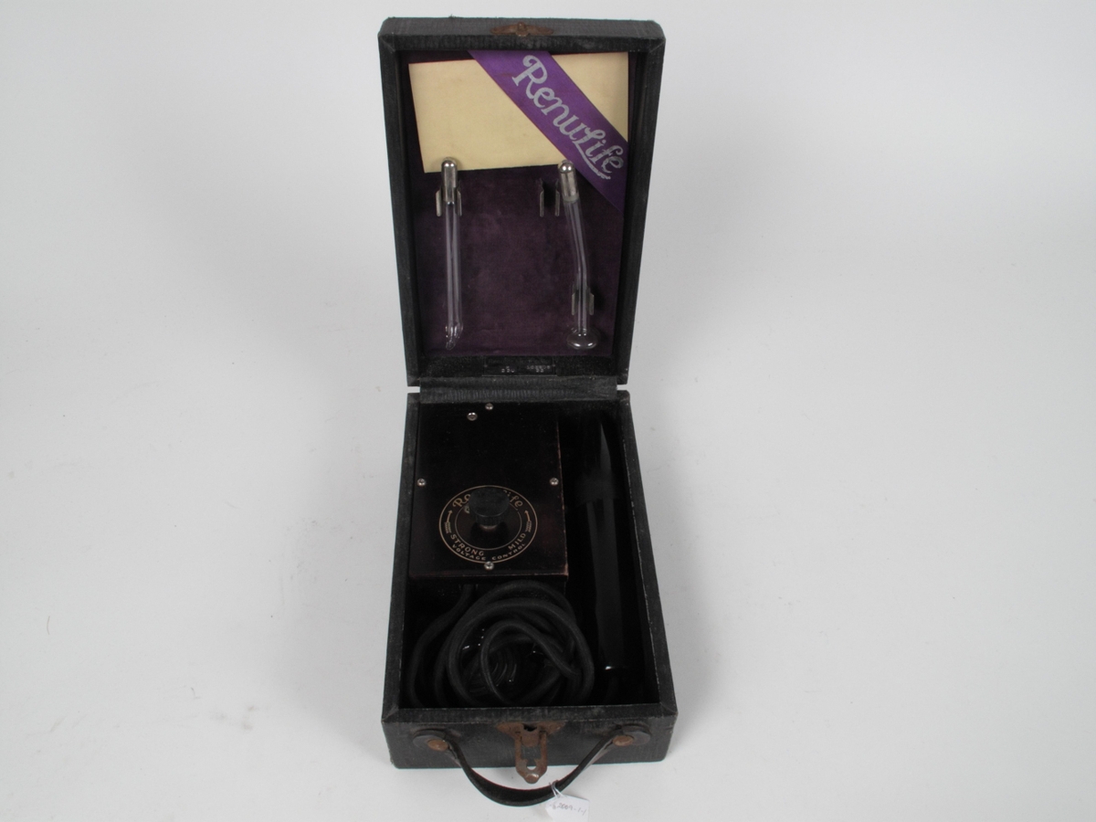 Raflækningartæki eða tæki til diatermi-lækninga af merkinu RenuLife. Tækið var til gigtarlækningar (sjúkraþjálfunar) og var notað til þess að örva auma líkamshluta með rafmagni. Tækið er í svörtu kassa. Það er tengt við 220 w rafmagn og á því er er rofi til þess að stýra styrk rafmagnsins. Handfang úr plasti er tengt við tækið og á það er hægt að setma mismunandi glerstauta sem lagðir voru á hina aumu líkamshluta. Tveir glerstautar fylgja tækinu og er annar brotinn. Með tækinu sem er af Model X, No. 103906, fylgir ábyrgðarskýrteini. Með gjöfinni fylgdu ýmis gögn sem varpa ljósi á starfsferil Jóns Kristjánssonar sem og á lækningatæki sem hann notaði og hvaða læknisfræðilegu forsendur lágu að baki.