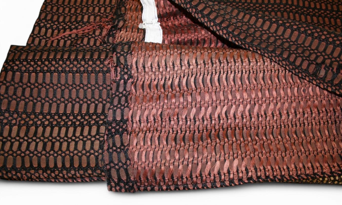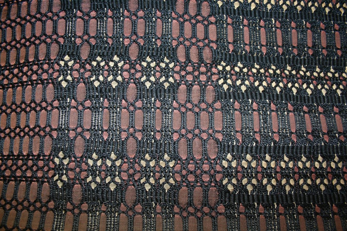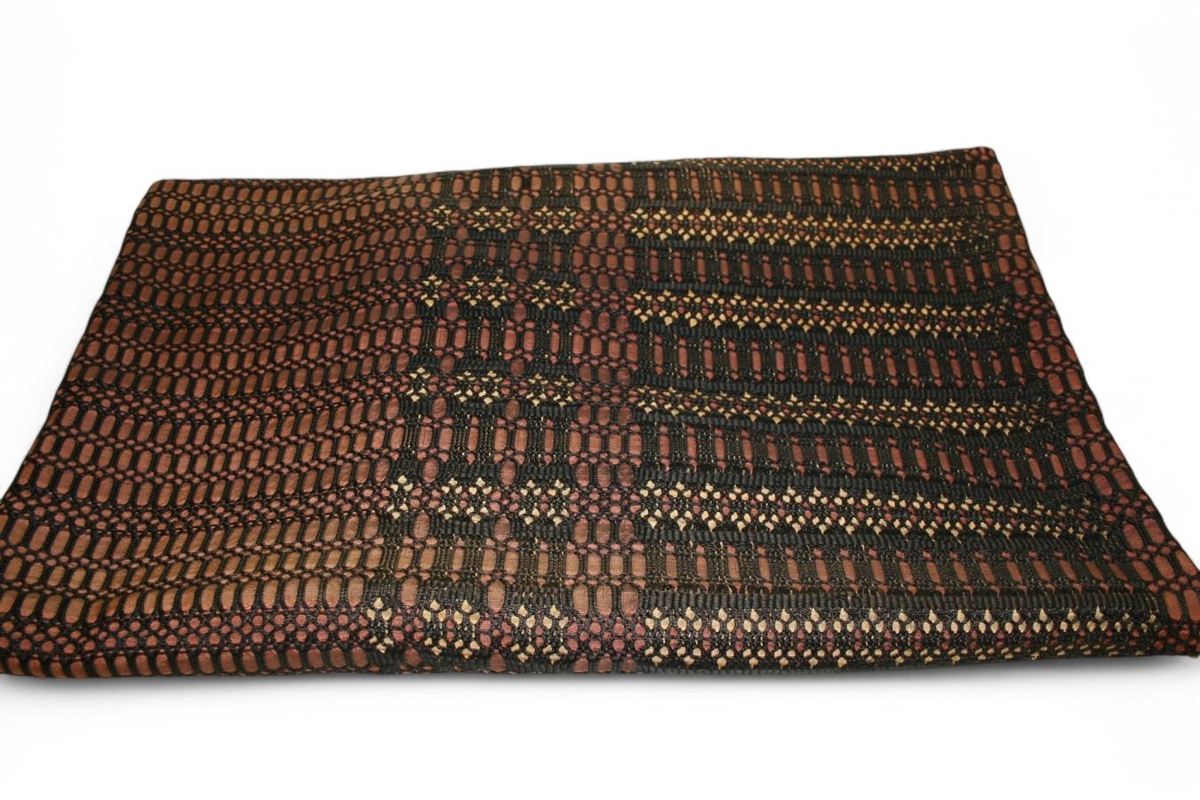 Gluggatjald. Ofinn vængur. Karólína Guðmundsdóttir vefari óf. Kniplingsvefnaður.