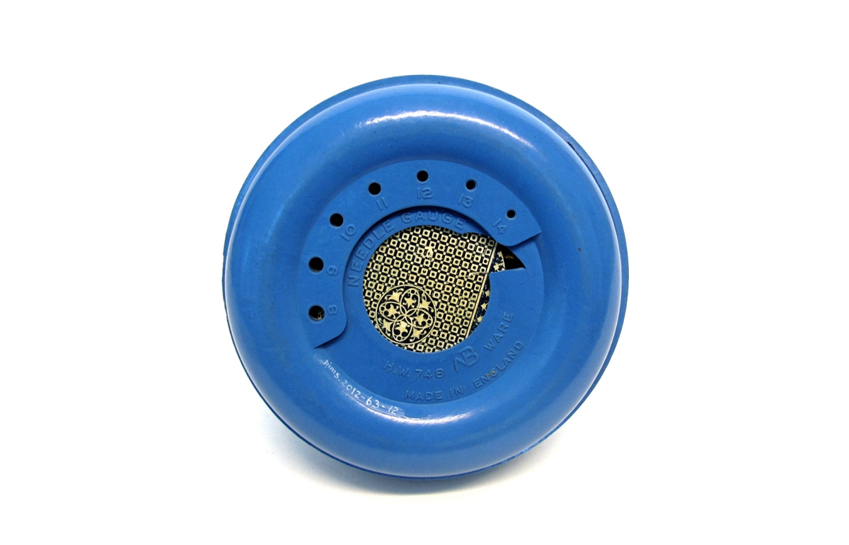 Garnbaukur, í laginu eins og býkúpa, úr bláu bakelít (plastefni) og með gulri plasthöldu (-reim). Baukurinn eða kúpan var notuð til að geyma garnhnykil í, haldan eða reimin var sett um úlnliðinn og ofan á kúpunni er gat fyrir garnendann. Þannig mátti, á þægilegan hátt, bera garnið með sér meðan prjónað eða saumað var. Á botninum eru sjö misstór göt til að mæla sverleika prjóna eða nála (prjónamælir). Kúpan er ensk framleiðsla. Á botninum stendur: H.W. 748 NB WARE MADE IN ENGLAND. Á innanverðum botni stendur ennfremur: "The design of this Beehive Woolholder has been approved by Patons & Baldwins.. Makers of Beehive wools. And is marketed with their consent". Á botninum eru frekari upplýsingar sem sjást ekki nú því límt hefur verið yfir gat í botninum. Garnkúpan mun vera framleidd á síðari helmingi fimmta áratugar tuttugustu aldar. Með kúpunni fylgdi heklunál nr. Þjms. 2012-63-12. Garnkúpan er úr eigu móðurömmu gefenda, Láru Stefánsdóttur. Hún fékk hana hjá frændkonu sinni en kúpan er keypt í útlöndum.