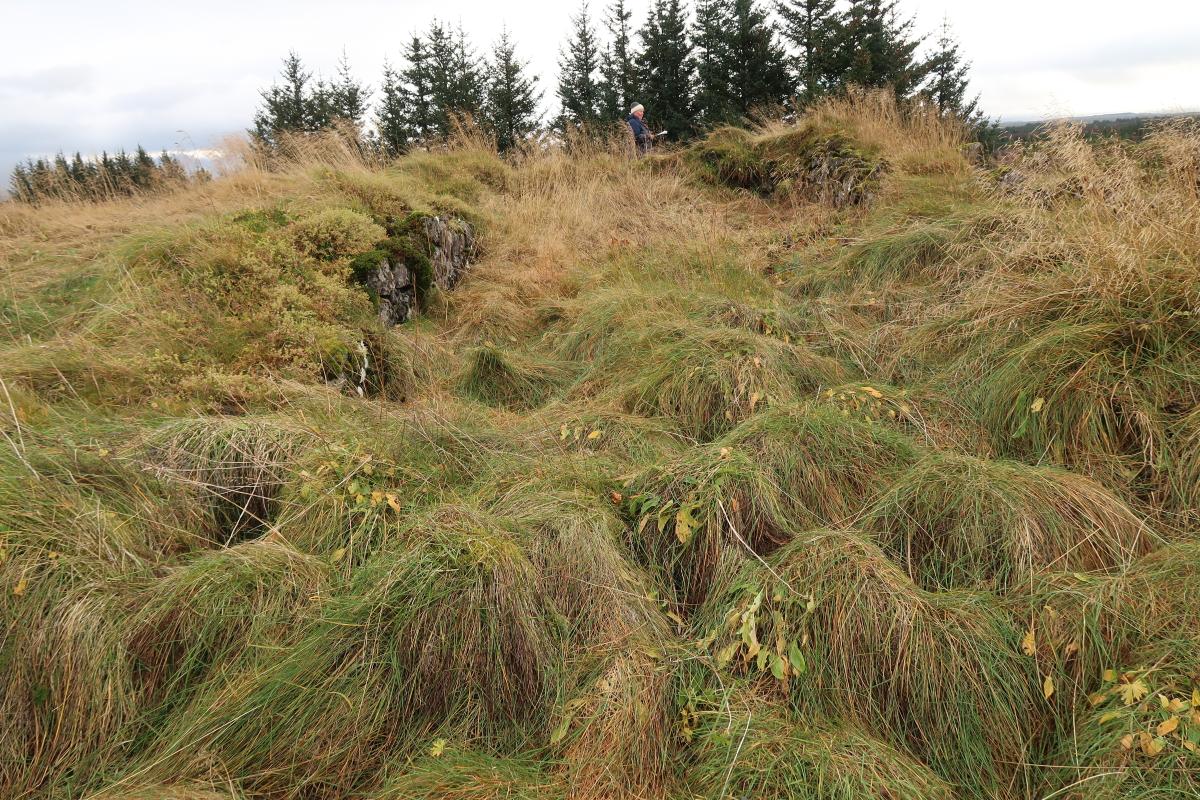 Efst á bergás Reiðhól, aðeins A - megin í toppnum.