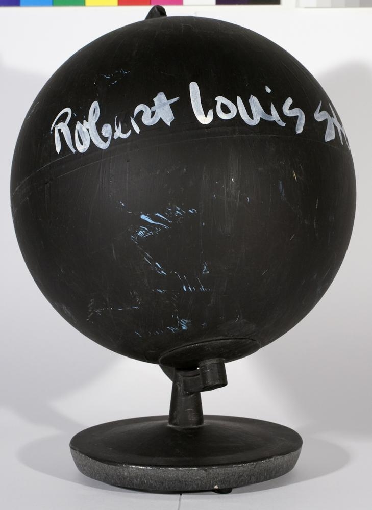 Hluti úr innsetningu.Hnattlíkan sem málað hefur veirð svart. Fyrir miðju á hnettinum hefur veirð skrifað með hvítri málningu "Robert Louis Stevenson"Hnötturinn er hluti úr innsetningu.