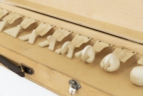 Stærðarmál hverrar einingar fyrir sig er mismunandi:Kassinn: hæð: 3,5 cm. Breidd: 85 cm Dýpt: 29,5 cm.Munnstykki - talið frá vinstri:nr.1: Hæð: 10,5 cm Breidd: 7,5 cm Dýpt: 1,7 cm.nr.2: H: 10,5 cm B: 7,5 cm. D: 2 cmnr.3: H: 10,5 cm B: 7,5 cm D: 2,5 cmnr.4: H:10,5 cm B: 7,5 cm D: 3 cmnr.5: H: 10 cm B: 7 cm D: 4 cmnr.6: H: 10 cm B: 7 cm D: 4,5 cmnr.7: H: 9,5 cm B: 7 cm D: 5 cmnr.8: H: 10 cm B: 5,5 cm D: 5,5 cmnr.9: H: 9 cm B: 5,5 cm D: 5