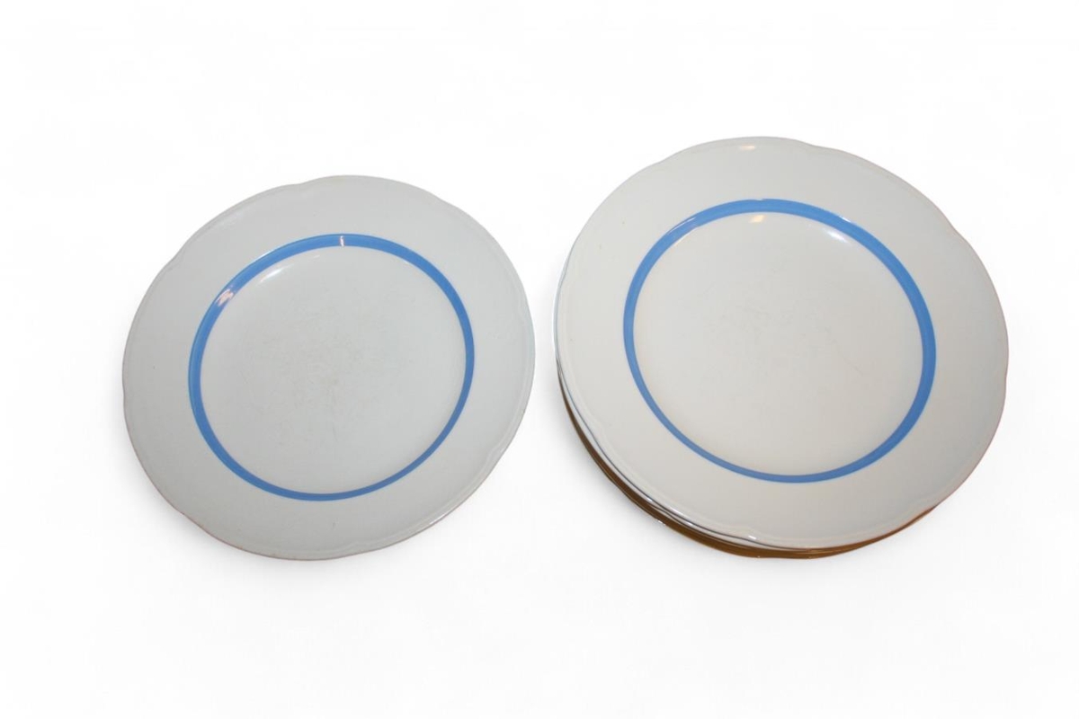 Diskur, matardiskur, hvítur með blárri rönd. Áletrun: Denmark Lone.