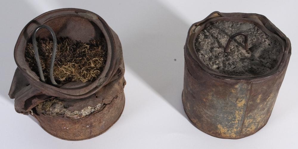 Dós 1: Ryðguð málmdós sem fyllt hefur verið með steypu. Fyrir miðja dósina hefur verið komið fyrir járni sem myndar nokkurskonar lykkju og er fast í steypunniDós 2: Ryðguð málmdós sem hefur verið fyllt af steypu til hálfs. Við steypumörkin hefur dósin verið beygluð og brotin. Mosa hefur verið komið fyrir ofan á steypunni. Járnlykkju hefur verið komið fyrir í steypunni. Undir hvorri dósinni er límmiði sem á er áletrað '52'.