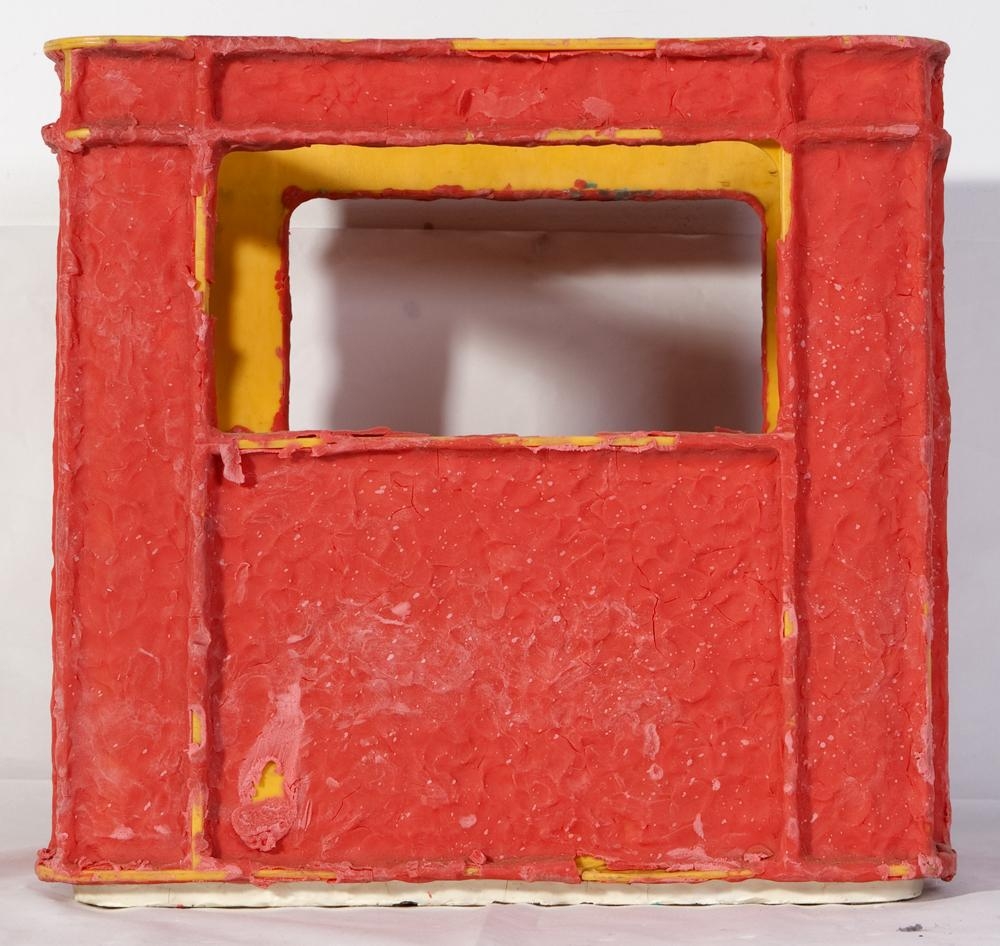 Gulur plastkassi, hólfaður niður og pláss fyrir 12 flöskur. Kassinn er vanlega hulinn með rauðum, mjúkum leir.
