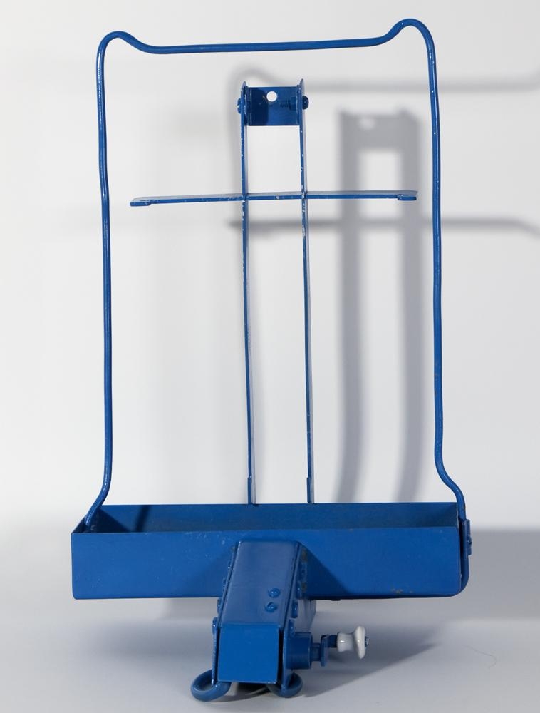 Málmstatíf, málað blátt. Á að halda spegli uppréttum. Fyrir neðan spegilinn er hálfgerður bakki. Á hlið statífsins er lítið hvítt handfang úr postulíni og frá því leiðir blálitað gúmmírör. Við fyrstu sýn mætti ætla að handfangið pumpi upp vatni sem ætti að renna niður spegilinn en þegar nánar er að gáð er ekki hægt að sjá neina pumpu eða annað sambærilegt sem gæti flutt vatn.