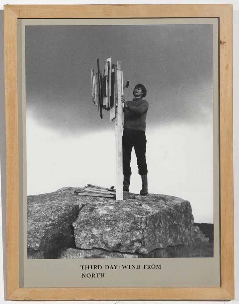 12 verkeiningar, svarthvítar ljósmyndir í mjóum ramma. Samtals tvær seríur með sama yfir titli, aðgreinast með undirtitli (sculpture/drawing). Hvor sería er með 6 einingum, 1 einingin er útskýring á gjörningi (lýsing), 5 einingar eru ljósmyndir, 4 þeirra af listamanni að fremja gjörninginn og stuttur texti (dagurinn þegar ljósmyndin var tekin og vindátt). Allar einingarnar eru númeraðar að aftan.Bakið er bókbandspappi, viðarrammi utan um hverja einingu. Gjörningurinn fór fram í Cornwall.