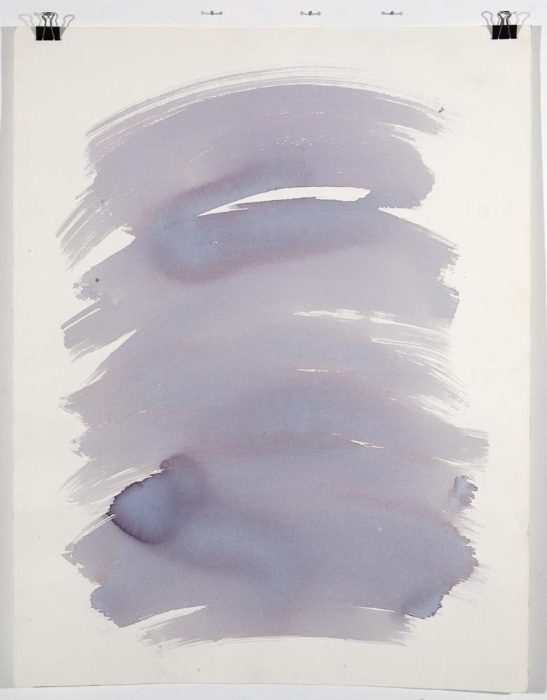 Vatnslitur á þykkan pappírBreið pennslaför, máluð lárétt á pappírinn - örlítið bogin. Máluð þétt og raðast lóðrétt niður.